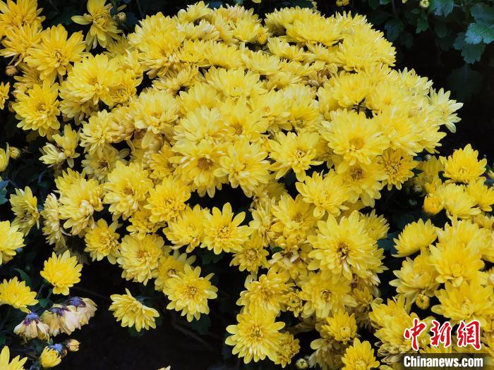 資料圖:圖為擺放在街頭的菊花。 祁增蓓 攝