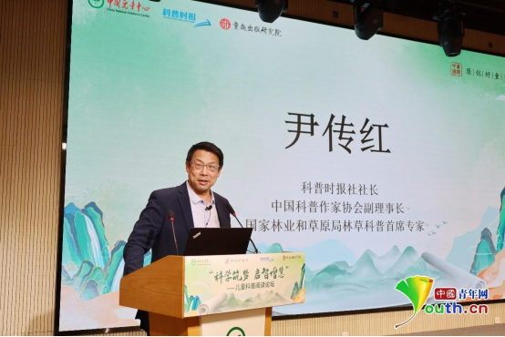 科普時報社社長、中國科普作家協(xié)會副理事長、國家林業(yè)和草原局林草科普首席專家尹傳紅發(fā)表題為“激發(fā)想象力和探求欲的科普閱讀”的主題演講。尹傳紅認為科普閱讀可以與孩子的智力發(fā)育同步進行,科學(xué)可能是最能彰顯問題、發(fā)現(xiàn)問題、解決問題的重要領(lǐng)域,科普閱讀能幫助孩子增長知識、增加智慧、增進思想。