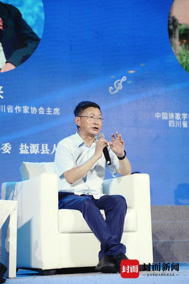 現(xiàn)場,阿來、陳智林與龔學敏就“詩歌創(chuàng)作如何與音樂結合”“詩歌如何賦能鹽源縣文旅發(fā)展”“如何打造四川特色的文化事業(yè)和文化產業(yè)”等議題展開了對話,深入探討鹽源的詩與遠方。
