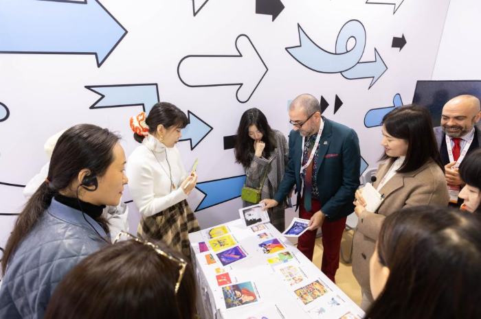 11月17日,參觀者在第十屆中國上海國際童書展現(xiàn)場觀看“2023金風車國際青年插畫家大賽”參賽作品。