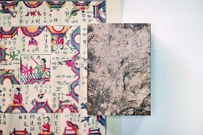 整本書在書口處還特別進行了雕刻,并采用噴繪工藝,強化石面凹凸不平的質(zhì)感,讓讀者能夠觸摸書口的不同深度,豐富了觸覺上的感受。包裹書脊的紗布,經(jīng)過茶葉染色的特殊處理,呈現(xiàn)出雅致的淺褐色。