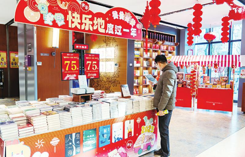 2月4日,讀者在甘肅省新華書店西北書城設(shè)置的“迎新悅讀啟航2025”炫春精品圖書聯(lián)展展臺(tái)前挑選自己喜歡的圖書。