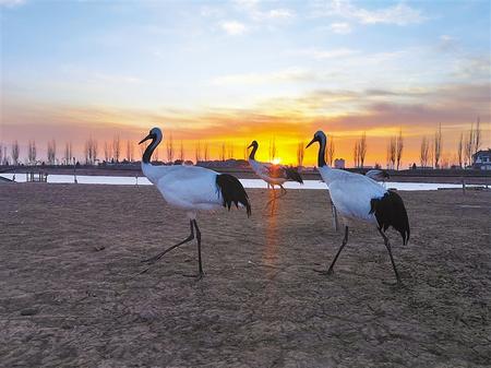 冬日的張掖國家濕地公園丹頂鶴、黑天鵝、朗德鵝、斑頭雁等沐浴在清晨的陽光下。這里良好的生態(tài)環(huán)境吸引了眾多候鳥棲息。通訊員 成 林
