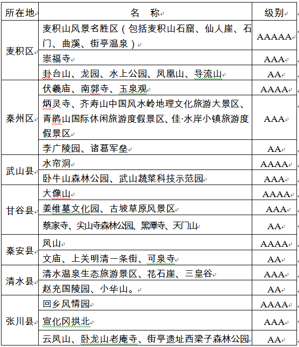 天水市恢復(fù)開放的國(guó)家A級(jí)旅游景區(qū)名單