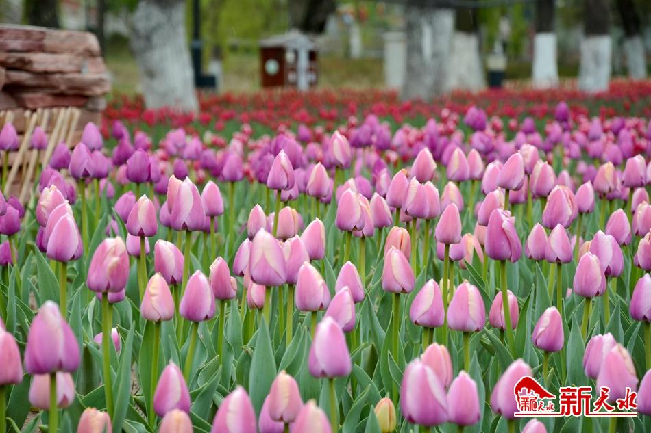 在經(jīng)歷了一個漫長的嚴(yán)冬之后,馬跑泉公園的25萬余株郁金香和5萬余盆各類時令鮮花在麥積大地上郁郁蔥蔥的綻放著。
