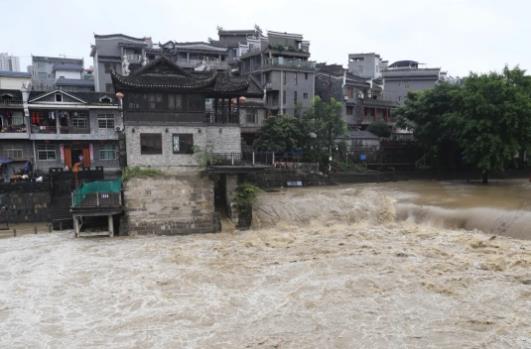 受持續(xù)強(qiáng)降雨影響,4A級(jí)景區(qū)乾州古城積水嚴(yán)重