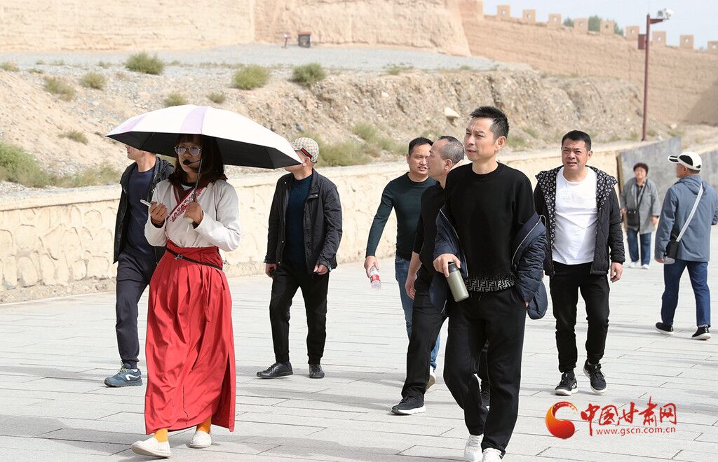 講解員帶領(lǐng)游客體驗嘉峪關(guān)關(guān)城