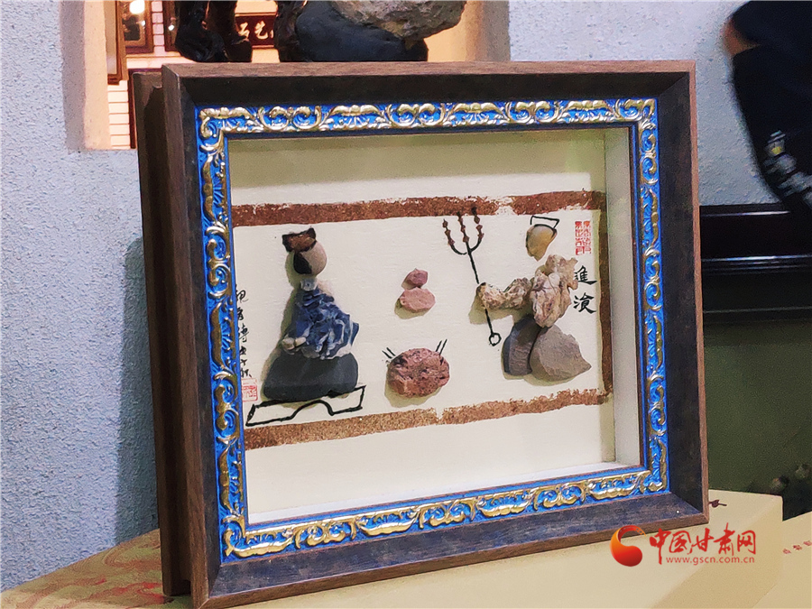 最近,周文露正在創(chuàng)作客戶(hù)定制的金陵十二釵圖,這幅風(fēng)雨雕除了人物面部經(jīng)過(guò)人為描繪加工,其他部位以及山水意境等都是戈壁沙石所做。很大程度上,這幅作品就是巧妙地將戈壁沙石創(chuàng)意堆砌達(dá)到畫(huà)面效果。