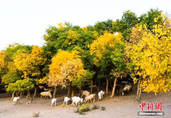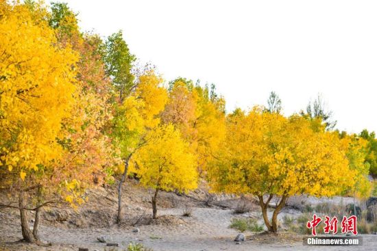 秋風(fēng)漸涼,秋色漸濃,地處絲綢之路黃金旅游段的甘肅敦煌,大漠戈壁上地勢低洼的地方或有河流經(jīng)過的地方,都會(huì)有大片大片的原始胡楊林,用金黃色璀璨奪目的色彩展示醉人的秋意,一輛輛車停靠在路邊,三五成群的游客徒步前往戈壁深處觀賞醉人的胡楊秋色。王斌銀 攝