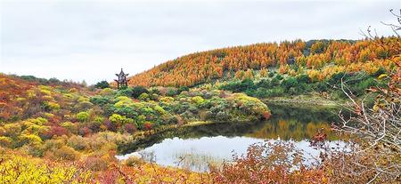 這里一年四季皆有值得欣賞的美景,可謂一時一景。春夏時節(jié),桃木山一帶草木蔥蘢,峰嶺翠嶂,前、后兩湫在一望蔚然的萬千丘壑中辟出兩點(diǎn)平闊明凈的幽境,像不惹凡塵的仙女隱在人跡不到處,任群山映襯著清靈俊秀的模樣,吐納著關(guān)山深處的空靈氣息。其前湫水深波靜,不能見底,水草飄搖,游魚雜出,水面倒映著四岸草木和亭臺曲欄,岸邊偶有漁人垂釣或游客輕歌,一派清幽韻致。后湫水淺色深,人工砌成的蓮花臺處于密藻之中,水邊泉眼密布,形成陰濕滲水帶,西側(cè)與北坡各有一座寺院,白墻金頂隱在一片蔥蘢之中,點(diǎn)綴成趣。每到初夏,后湫北坡般若寺周圍遍開一種白色野花,因必為兩朵連枝并開,人們稱其姊妹花。此時遠(yuǎn)望近觀,可見花濃成勢,純潔芬芳,自成一景。若在清晨或雨后,云霧彌漫山間,湫池的青白水面在渺渺煙雨中依稀顯隱,變幻不定,斯山斯水頓如仙界。