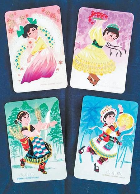 1978年,甘肅省歌舞團(tuán)創(chuàng)作演出的《絲路花雨》,取材自敦煌壁畫和絲綢之路題材,以和平與友誼為主題,講述敦煌畫工“神筆張”及女兒英娘與波斯商人患難與共、生死相交的故事。1978年赴京演出,榮獲文化部慶祝新中國成立30周年獻(xiàn)禮創(chuàng)作一等獎(jiǎng)、演出一等獎(jiǎng),1994年又獲中華民族20世紀(jì)舞蹈經(jīng)典作品金像獎(jiǎng),幾十年來經(jīng)久不衰。為此,蘭州印刷廠于1980年、中國銀行新加坡分行、內(nèi)蒙古自治區(qū)工藝美術(shù)處于1981年分別發(fā)行了《絲路花雨》年歷片,以此留存了當(dāng)年劇目的演出風(fēng)光。