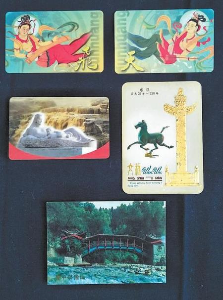 甘肅的自然風(fēng)光優(yōu)美,人文歷史悠久,經(jīng)過不斷挖掘,精心保護(hù),成為人們旅游、觀光的理想之地。北京中鈔信用卡廠于2001年制作的“飛”字片、“天”字片“飛天”對(duì)卡年歷片,中國工商銀行甘肅分行于2000年設(shè)計(jì)了《黃河母親》年歷片,中國農(nóng)業(yè)銀行甘肅分行于1987年設(shè)計(jì)的《興隆山握橋風(fēng)光》年歷片,中國遠(yuǎn)洋運(yùn)輸公司上海分公司于1978年制作的《馬踏飛鳥》年歷片,都為甘肅旅游風(fēng)光作了宣傳。
