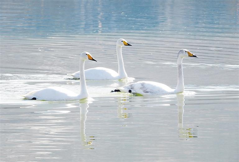 臨夏州永靖縣鹽鍋峽鎮(zhèn)境內(nèi)的黃河八盤峽水庫(kù)成為天鵝等候鳥越冬的樂園