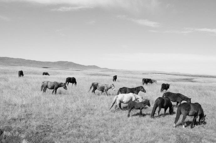 馬兒,似乎不再是草原的寵兒了。我們開(kāi)車(chē)向草原深處漫溯,行進(jìn)了三四公里,終于看到路邊有十幾匹馬組成的馬群。這些河曲馬儀態(tài)優(yōu)美,安靜自在。