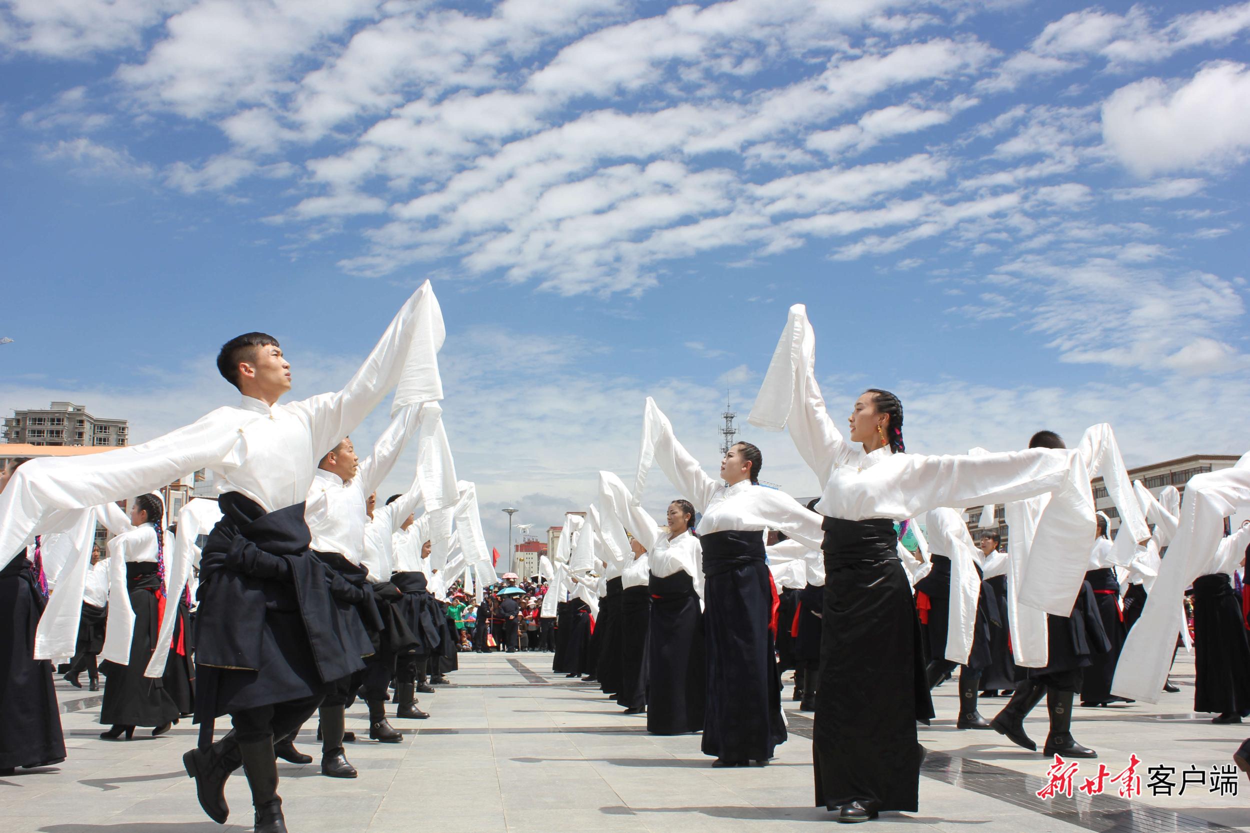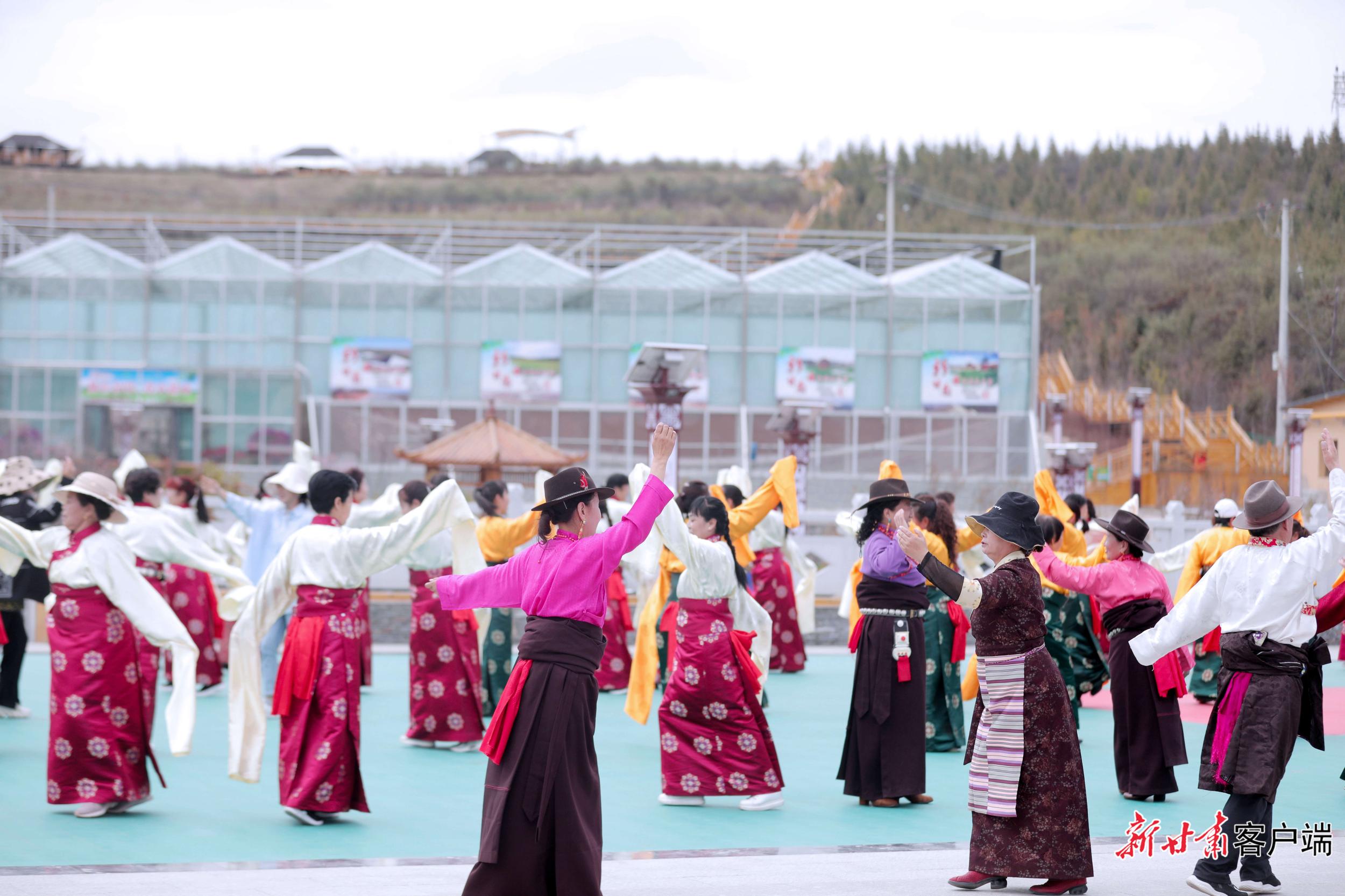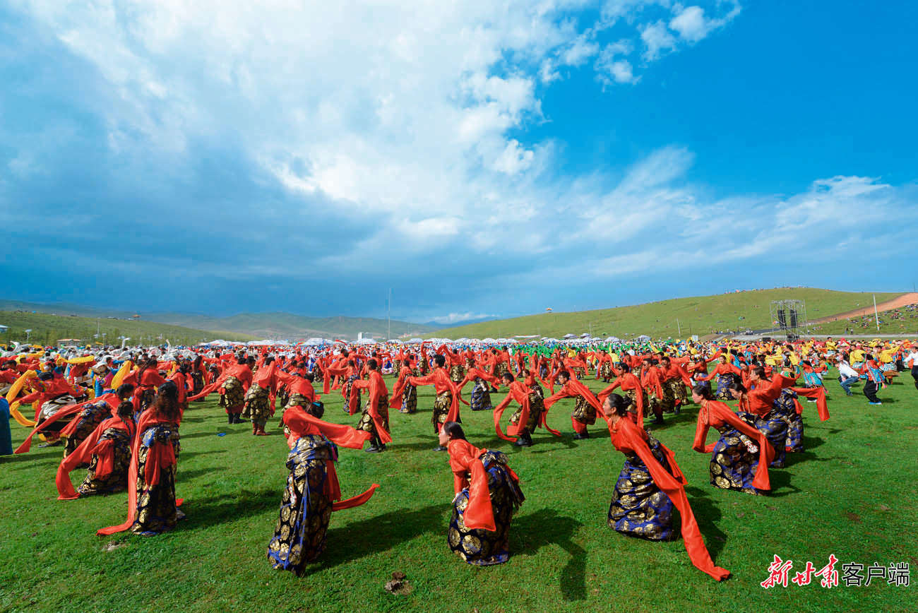 5月29日,在距離合作市區(qū)2公里處的加拉尕瑪村,隨著《吉祥甘南》優(yōu)美的旋律,游客與身著特色民族服裝的藏族兒女,和著優(yōu)美的節(jié)拍跳起了鍋莊舞。動(dòng)聽(tīng)的樂(lè)曲、颯爽的舞姿、五彩的服裝,讓當(dāng)周草原陷入了一片歡樂(lè)的海洋。