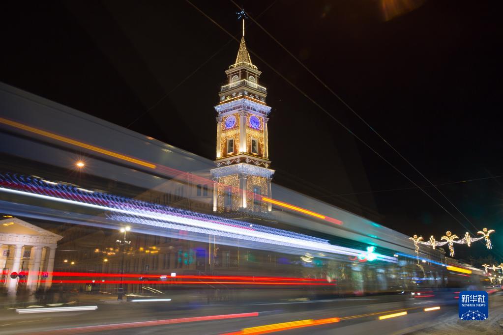 新年即將到來,俄羅斯圣彼得堡街頭點(diǎn)亮各色燈飾,營造節(jié)日氣氛。