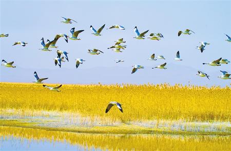 蘇干湖草原水草豐美、候鳥(niǎo)翻飛。高宏善