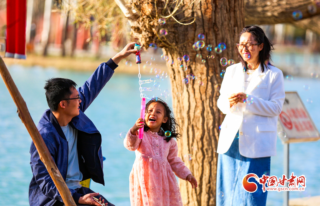 4月5日,甘肅省酒泉市天氣晴朗,春光明媚,不少市民游客利用晴好天氣,來到酒泉公園踏春游玩,親近自然,放松身心,享受美好春光。