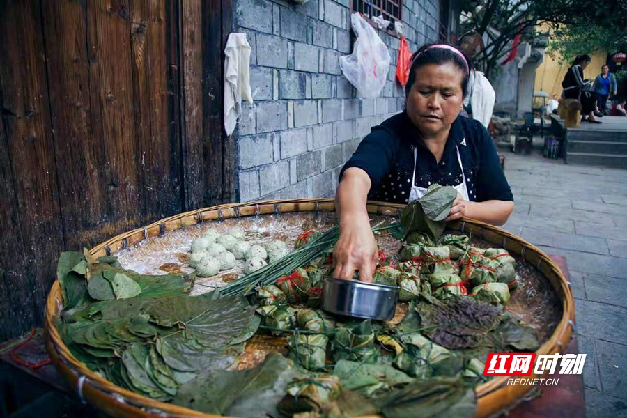 湘西吉首內(nèi),一位商販正在制作蒿子粑粑。