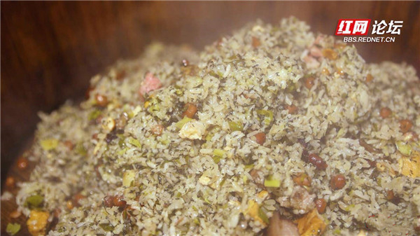 若是將鮮嫩的青蒿用石臼搗碎小炒,再與本地特產(chǎn)香糯米、切成小顆粒的臘肉一同上鍋蒸,就做成了湘西社飯。每逢春季社日,湘西地區(qū)農(nóng)民都要制作社飯祭祀土地神,祈求年景順利、五谷豐登、家運(yùn)祥和,如今,亦成為人們“嘗春”的佳品。