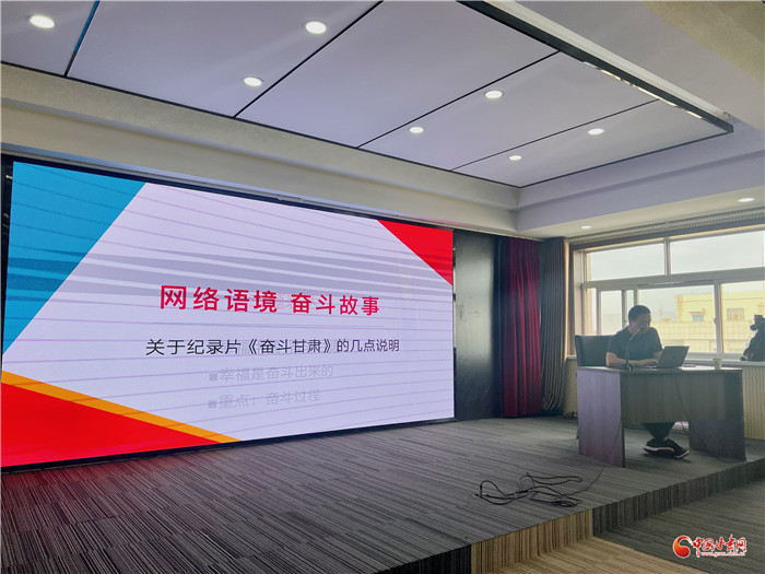 隨后,舉辦了《幸福中國——奮斗甘肅》大型網絡紀錄片導演培訓會,會議由蘭州電視臺紀錄片創(chuàng)作中心導演趙國鵬作為主講人,中國甘肅網總編輯張振宇主持。