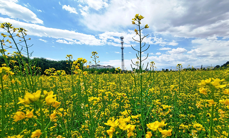 以大地為布,金黃的油菜花開滿鄉(xiāng)間,與鄉(xiāng)村民居交相輝映,構(gòu)成一幅美麗的鄉(xiāng)村畫卷,也開成了鄉(xiāng)村振興的“致富花”。去年,沙河鎮(zhèn)西寨村、五三村依托“一戶一塊田”高標準農(nóng)田建設后的便利條件,大力調(diào)整產(chǎn)業(yè)結(jié)構(gòu),積極引進專業(yè)合作社在本村建立蔬菜種植基地。今年,沙河鎮(zhèn)種植油菜300多畝,從5月中旬開始,油菜花便陸續(xù)開放,現(xiàn)在已經(jīng)進入全盛時期。