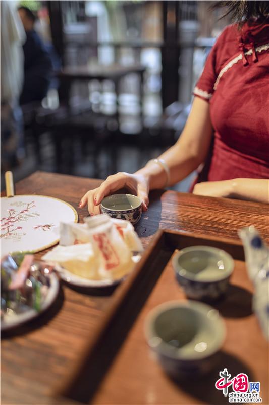 “白茶清歡無別事”,到蜆園橋畔茶香四溢的煮葉去喝一杯茶,在茶香氤氳中,看窗外人來人往,感受悠閑慢時(shí)光。提燈慢行在花巷雨巷,時(shí)光在石板路上浸潤;坐上手搖船穿行于水巷,江南小調(diào)在槳聲燈影中氤氳;水動(dòng)魚池岸,光影輪轉(zhuǎn)中看魚群跳躍。