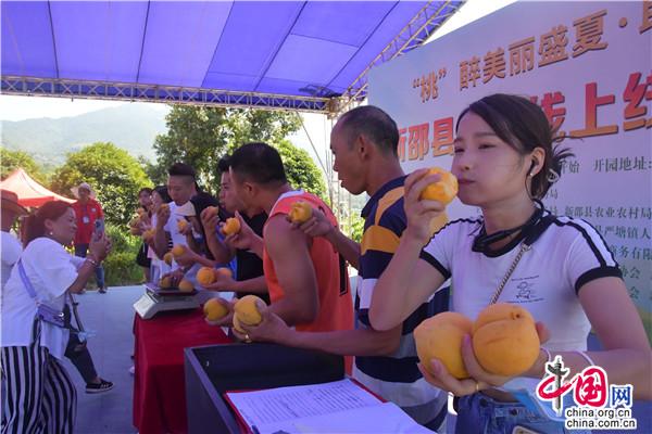 活動中,還開展了 “最大桃王”“最甜桃后”評比和吃黃桃比賽,將現(xiàn)場氣氛推向了高潮。活動最后,還開啟了2022年新邵縣“新邵資味”農(nóng)特產(chǎn)品短視頻暨直播大賽。