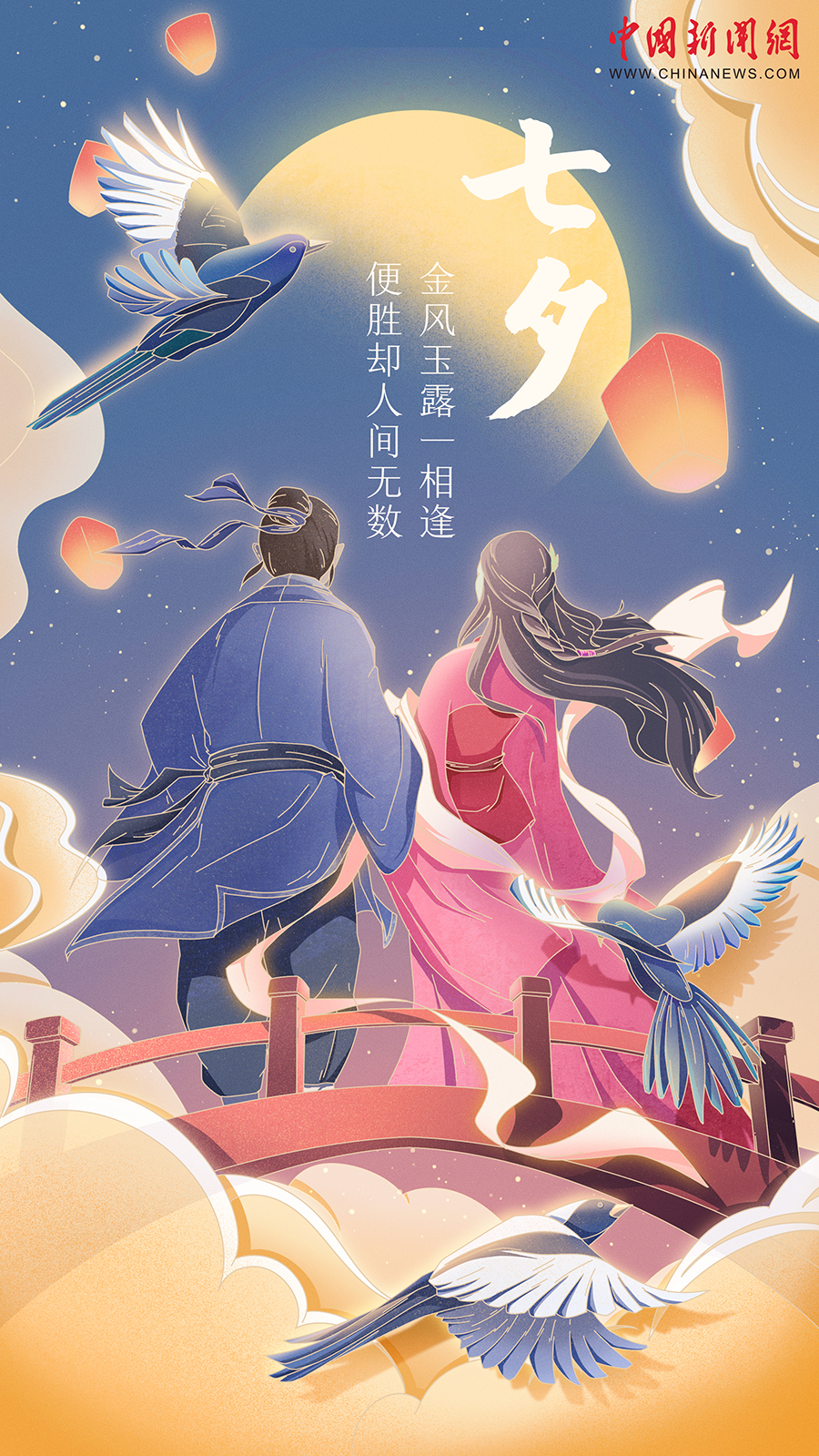 農(nóng)歷七月初七,七夕節(jié),一個(gè)洋溢著浪漫氣息的中國(guó)傳統(tǒng)節(jié)日。小時(shí)候,它是奶奶、外婆口中動(dòng)人的美麗傳說(shuō);上學(xué)時(shí),它是課本里讓你感嘆的課文、詩(shī)詞與插畫;長(zhǎng)大后,它是你與那個(gè)人最在乎的特殊日子之一。雙向奔赴的歡喜,轟轟烈烈的告白,平凡溫暖的陪伴,一起變老的誓言……