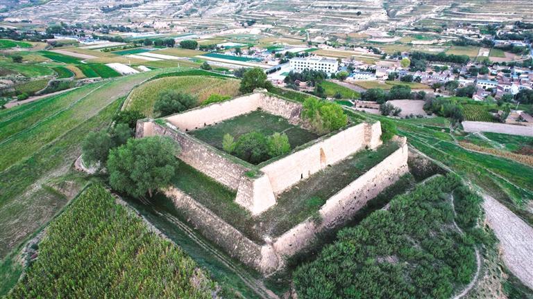 漫步騾子灘,附近的水家坡堡子也值得一去。這個(gè)堡子呈正方形,占地超4畝,不管從哪個(gè)視角看,都稱(chēng)得上震撼。堡子分上下兩層,下層高5米、寬5米、邊長(zhǎng)55米,上層高6米、底部厚3.5米、頂部厚2米、邊長(zhǎng)35.5米。堡子外圍修有一圈寬5米、深6米、總長(zhǎng)230余米的壕溝,曾為護(hù)城河。堡子約建于1946-1948年間,用來(lái)辦公和防御戰(zhàn)爭(zhēng)。1949年8月,解放軍在水家坡地界圍剿國(guó)民黨馬步芳部隊(duì),經(jīng)過(guò)一天一夜戰(zhàn)斗,馬步芳部隊(duì)潰敗逃往新?tīng)I(yíng)方向,當(dāng)時(shí)有一發(fā)炮彈落在堡子一角,至今炮坑清晰可見(jiàn)。