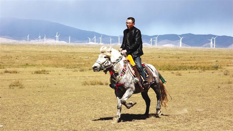 驅(qū)車向草原腹地進(jìn)發(fā),遠(yuǎn)遠(yuǎn)就能看見(jiàn)有人在馴馬。馴馬者房利軍和他的坐騎“尕青”仿佛“人馬合一”,同呼吸、共步調(diào),一遍遍練習(xí),像走,更像飛。這便是傳說(shuō)中的走馬文化,和跑馬的加速度不同,走馬不管是走還是跑,都是快步勻速,短途速度快,長(zhǎng)途耐力強(qiáng),騎乘平穩(wěn),姿態(tài)優(yōu)美,觀賞性強(qiáng)。在牧區(qū),走馬實(shí)用性強(qiáng),深受當(dāng)?shù)厝藲g迎。曾有專家稱,“馬踏飛燕”的“馬”即為走馬。每天,和武威天祝一山之隔的這片草原,都與房利軍有關(guān),在這里,他專心馴馬,而他的500只羊則在一旁撒歡。尤其從高空俯瞰,草原牧羊的畫(huà)面甚是壯觀。看完馴馬,房利軍騎馬帶路,采訪車沿著馬道回到了“家”。