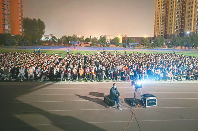 河南舞鋼第二高級(jí)中學(xué)校園公益電影放映現(xiàn)場(chǎng)。本文作者供圖