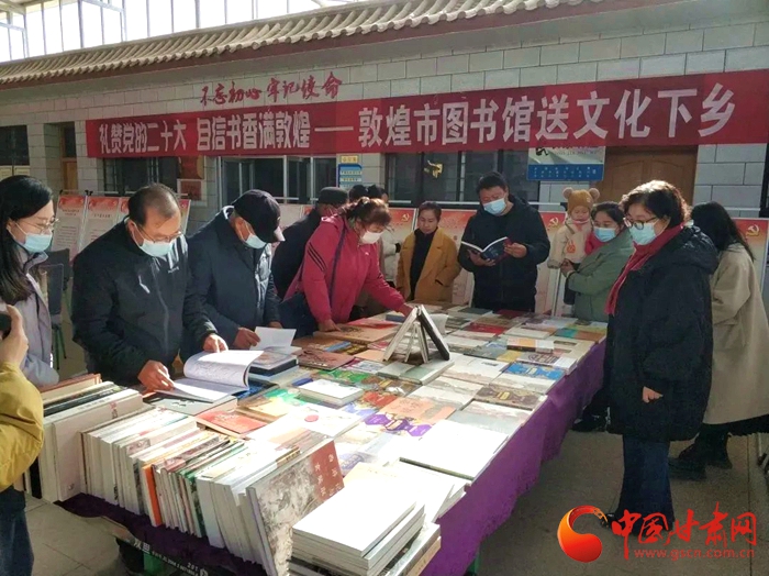 中國(guó)甘肅網(wǎng)11月15日訊 (本網(wǎng)記者 張?zhí)m琴)為了深入學(xué)習(xí)宣傳貫徹黨的二十大精神,近日敦煌市圖書館組織開展“禮贊黨的二十大,自信書香滿敦煌”送文化下鄉(xiāng)活動(dòng)受到當(dāng)?shù)厝罕姎g迎。據(jù)了解,活動(dòng)將在敦煌市各鄉(xiāng)鎮(zhèn)持續(xù)進(jìn)行,通過(guò)黨的二十大主題圖片展和敦煌精品圖書展相結(jié)合,利用文化惠民下基層的方式,向基層群眾宣傳黨的二十大精神,豐富人們的精神文化生活。