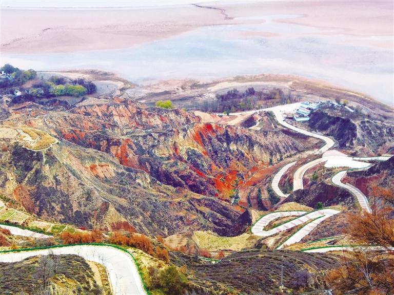 初冬時節(jié)的劉家峽庫區(qū)沿岸,盤山公路、丹霞地貌與碧水構(gòu)成了一幅多彩畫卷