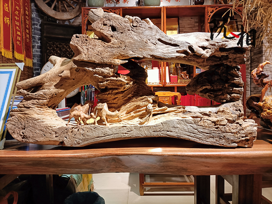 俗話說“朽木不可雕”,但經根雕藝人甘博巧手雕琢,便會枯木逢春。