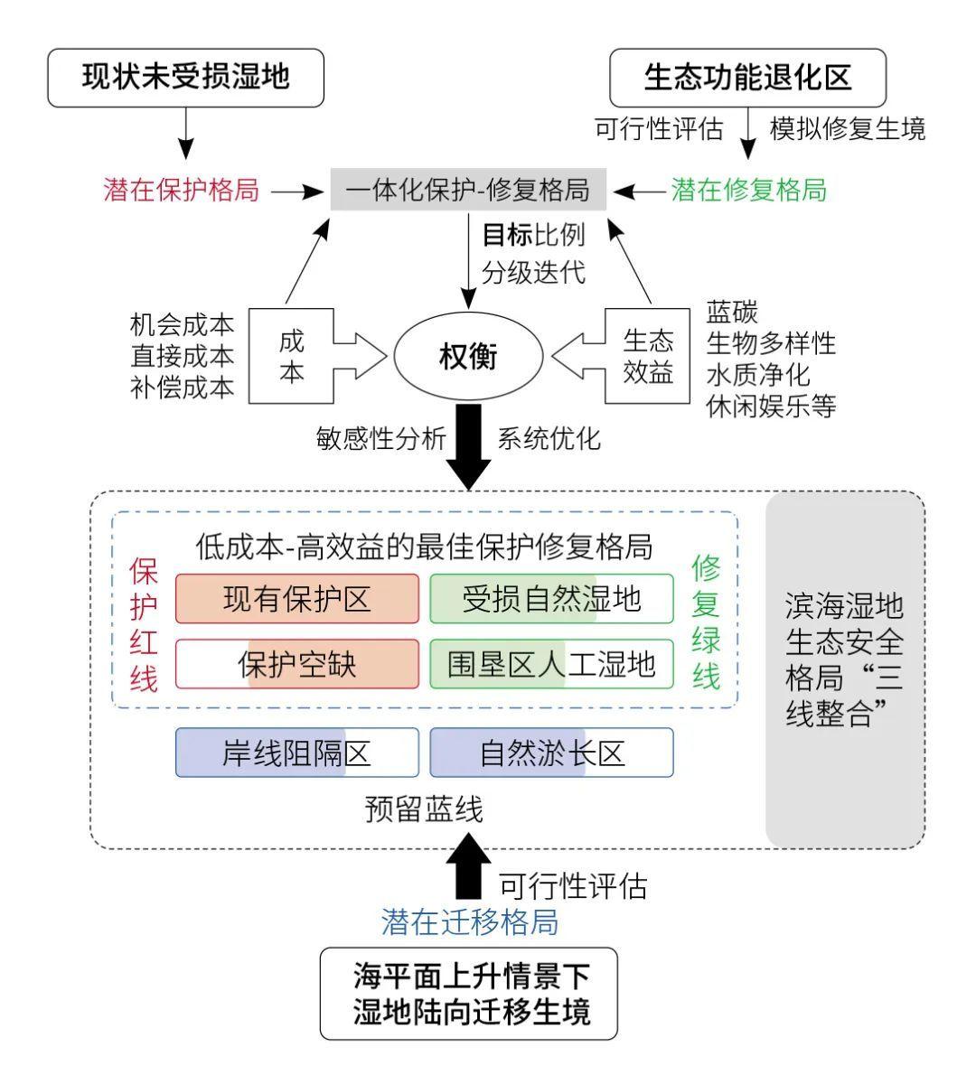 模擬評估保護修復目標、社會經濟成本和修復后生態(tài)效益之間的權衡關系,確定“目標-成本-效益”協(xié)同優(yōu)化的一體化濕地保護修復格局;