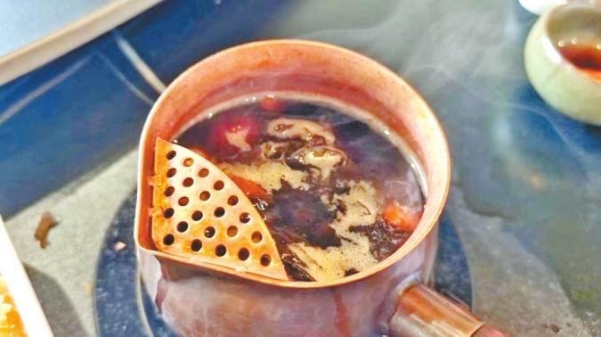 “‘茶圣’陸羽的《茶經(jīng)·五之煮》記載,煮茶的時候會放蔥、姜、棗、橘皮、茱萸、薄荷等佐料,所以現(xiàn)在罐罐茶所添加的配料,如紅棗、枸杞、桂圓、葡萄干、菊花、冰糖等,其實就是最原始的煮茶法的延續(xù)。”唐陳虓說。