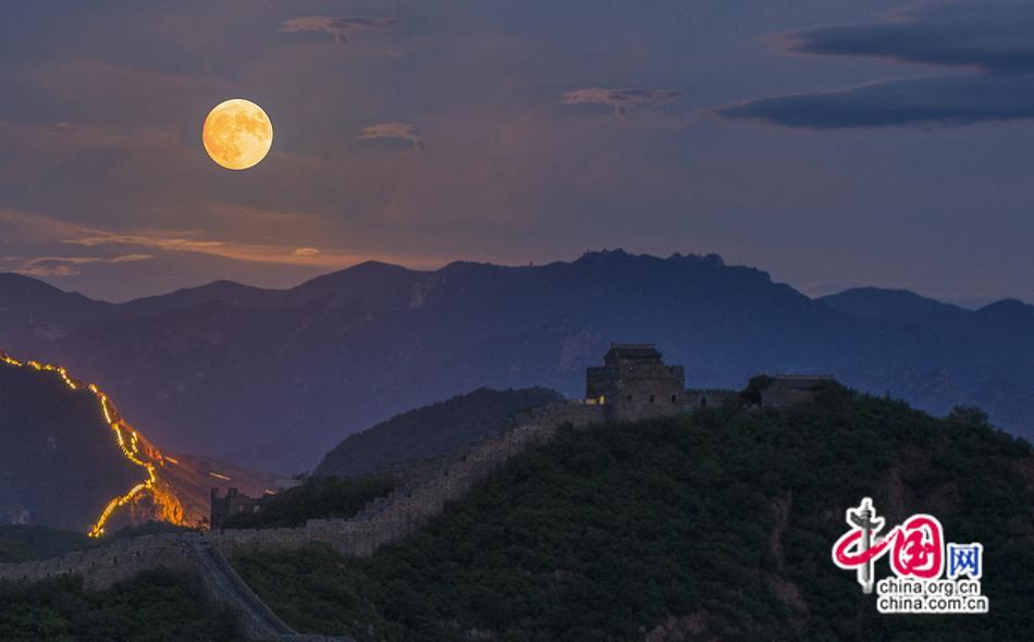 【點睛】8月30日晚,今年最大“超級月亮”現(xiàn)身金山嶺長城夜空。夜色中,曾被央視評選為“中國最美賞月地”的金山嶺長城顯得更加神秘、壯美巍峨。中秋國慶小長假就要來了,長城賞月別有韻味。