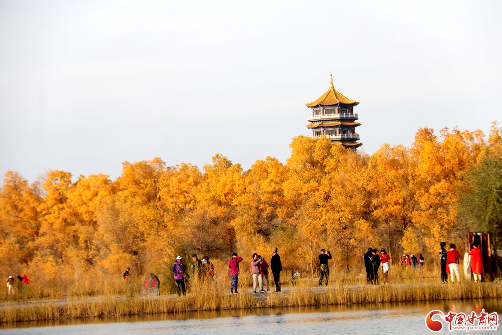 秋高氣爽,金塔沙漠胡楊林景區(qū)進(jìn)入最佳觀賞期,大片胡楊由翠綠轉(zhuǎn)成金黃,與湛藍(lán)的天空交相輝映。在蒼茫大漠之上,萬畝胡楊層林盡染,形態(tài)各異的胡楊巍然屹立,依水而生。