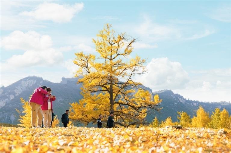 金秋時節(jié),走進徽縣嘉陵鎮(zhèn)田河村,恍若走進了金色的仙境。153棵古銀杏樹滿身金黃,一地落葉似“金色地毯”。銀杏樹下,品銀杏茶、吃銀杏果、享銀杏風情,美不勝收,吸引眾多游客前來拍照打卡。如今,美麗風景變身“美麗經(jīng)濟”,當?shù)匾劳星赉y杏資源優(yōu)勢,引進“銀杏夢谷”旅游項目,打造集旅游觀光、生態(tài)康養(yǎng)、休閑娛樂、農(nóng)特產(chǎn)品銷售為一體的美麗鄉(xiāng)村旅游示范點,讓千年古樹煥發(fā)新的生機。本報記者 冉創(chuàng)昌 高瓊 攝