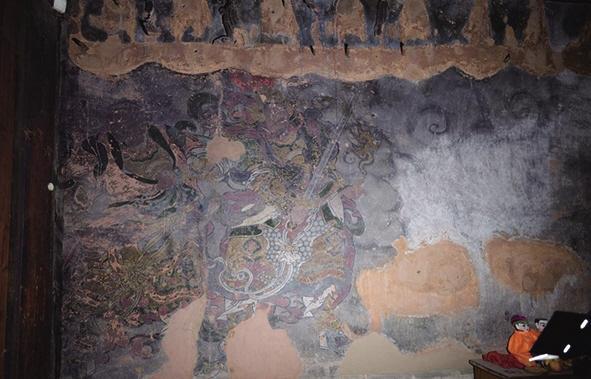 現(xiàn)建筑保存完好,塑像多被破壞,僅存明代懸塑七尊,塑像腳底踩踏祥云,衣帶飄逸靈動,面容栩栩如生。東西兩壁留有四位天神畫像。殿內(nèi)遺留的龐、劉、茍、畢四大雷部元帥門壁畫,與門楣上方的懸塑和拱眼壁上繪畫的尊神,均是研究明代道教藝術(shù)的珍貴遺存,是當(dāng)?shù)厝?、道、佛三教并存,多元文化共同發(fā)展的歷史見證,對研究土司文化具有重要價(jià)值。
