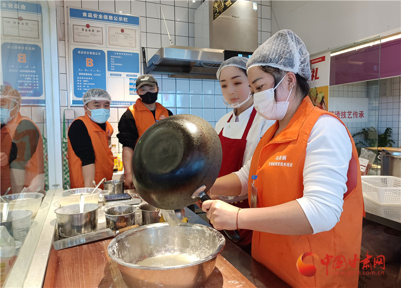 學習過程中,學員主要學習手搟粉和洋芋丸子制作技藝,以及油潑辣椒和麻辣燙底料的制作技藝,同時,老師還會在食材選擇等方面給予指導,讓學員系統(tǒng)掌握甘肅麻辣燙制作技藝。