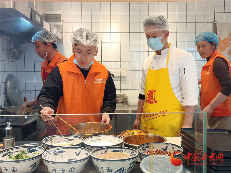 潑辣椒,制作手搟粉,在老師的帶領下,王學佳一個步驟一個步驟地學習天水麻辣燙的要領,希望能將正宗的天水麻辣燙帶回東北。