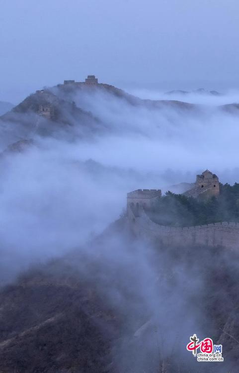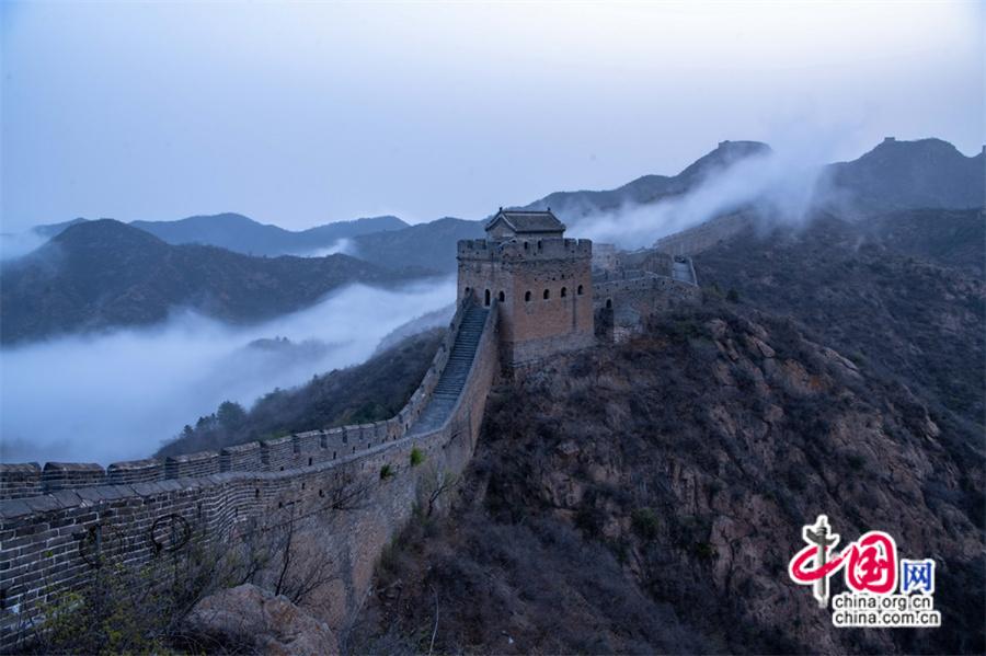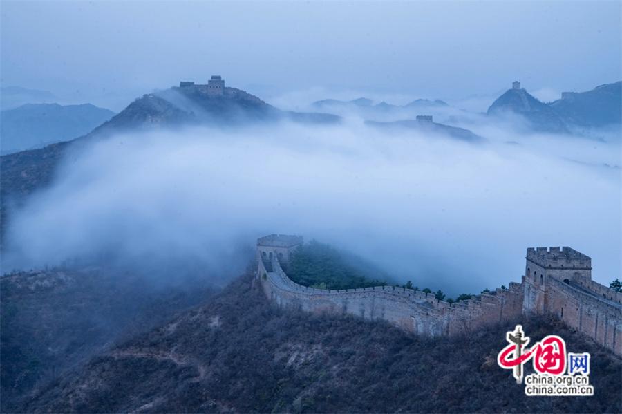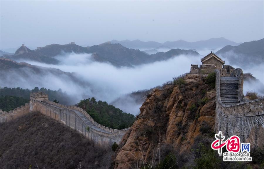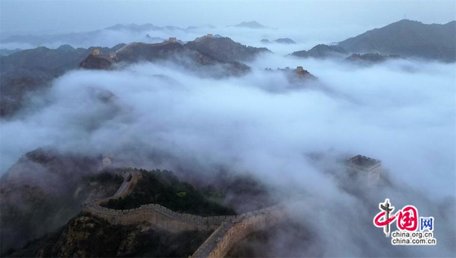 春風輕撫金山嶺, 茫茫云海與蜿蜒長城相互映襯,構(gòu)成了一幅幅壯美畫卷。