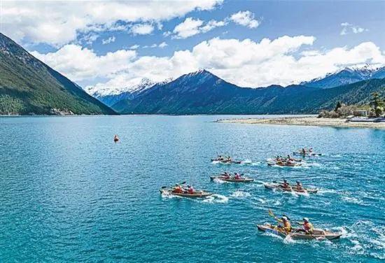 4月20日,2024年巴松措國際漂流公開賽的選手在比賽中。 新華社記者 孫非攝