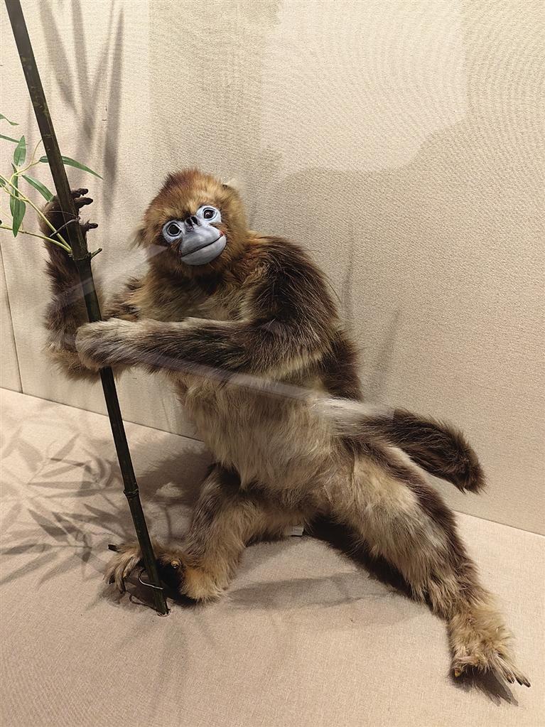 展出的動(dòng)物標(biāo)本中,最受歡迎的莫過(guò)于“萬(wàn)人迷”大熊貓。旁若無(wú)人地啃著竹子,眼中只有美食和下一頓美食。