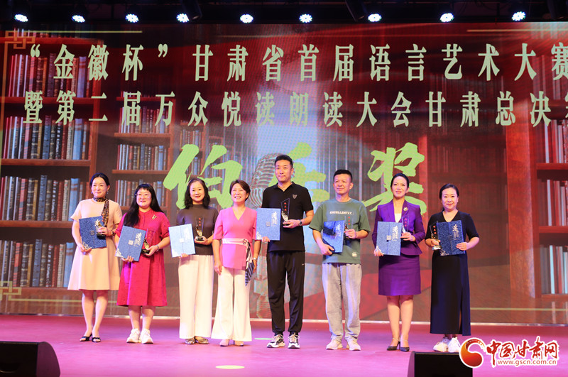 在展演環(huán)節(jié),參賽選手們用豐富多彩的語言表演形式,聲情并茂的舞臺演繹,為觀眾呈現(xiàn)了一場精彩絕倫的視聽盛宴,贏得了現(xiàn)場觀眾經(jīng)久不息的掌聲,頒獎儀式在合誦《這就是甘肅》中落下帷幕。