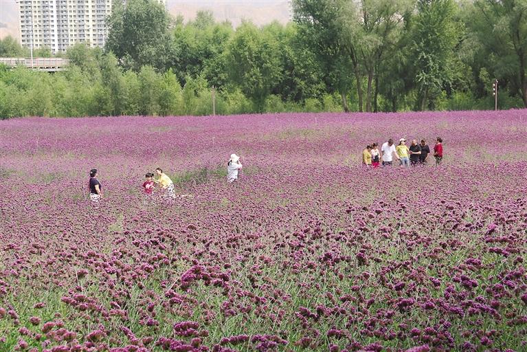 如果說(shuō)涼爽是秋的前奏,那么絢麗便是它的主旋律。初秋的永靖黃河花堤,大面積馬鞭草競(jìng)相盛開(kāi),絢爛如詩(shī),吸引眾多居民和游客前來(lái)賞花打卡。遠(yuǎn)看,大片的馬鞭草盛放成一片紫色的花海,秋千、風(fēng)車、長(zhǎng)椅點(diǎn)綴其間,行走其中,仿佛置身普羅旺斯的薰衣草田。沿著花海間的步道緩步前行,一陣微風(fēng)裹挾著清甜的香氣迎面撲來(lái),讓人頓感清涼舒暢、心曠神怡。