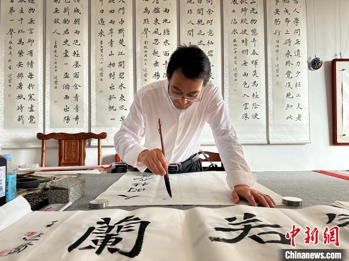 8月26日,甘肅通渭悅心國(guó)際書畫村,書法家在工作室創(chuàng)作。閆姣 攝