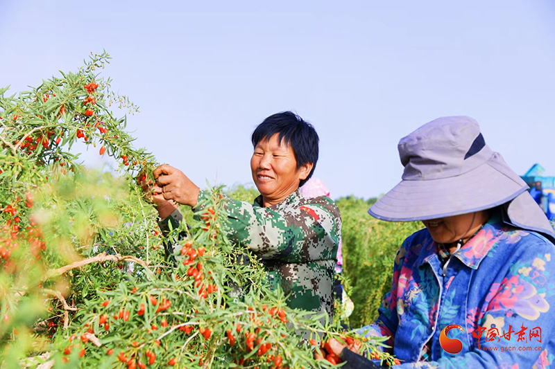 當?shù)谝豢|晨光穿透薄霧,照耀在玉門市柳河鎮(zhèn)二道溝村的枸杞田上時,只見一望無際的枸杞林郁郁蔥蔥,綠葉間點綴著密密麻麻的枸杞果。這些果實色澤鮮艷,飽滿圓潤,散發(fā)著誘人的光澤。農(nóng)戶們穿梭其間,手持籃子或袋子,忙碌而有序地進行采摘工作。他們的臉上洋溢著豐收的喜悅,歡聲笑語在田間地頭回蕩,構(gòu)成了一幅幅生動和諧的豐收畫卷。
